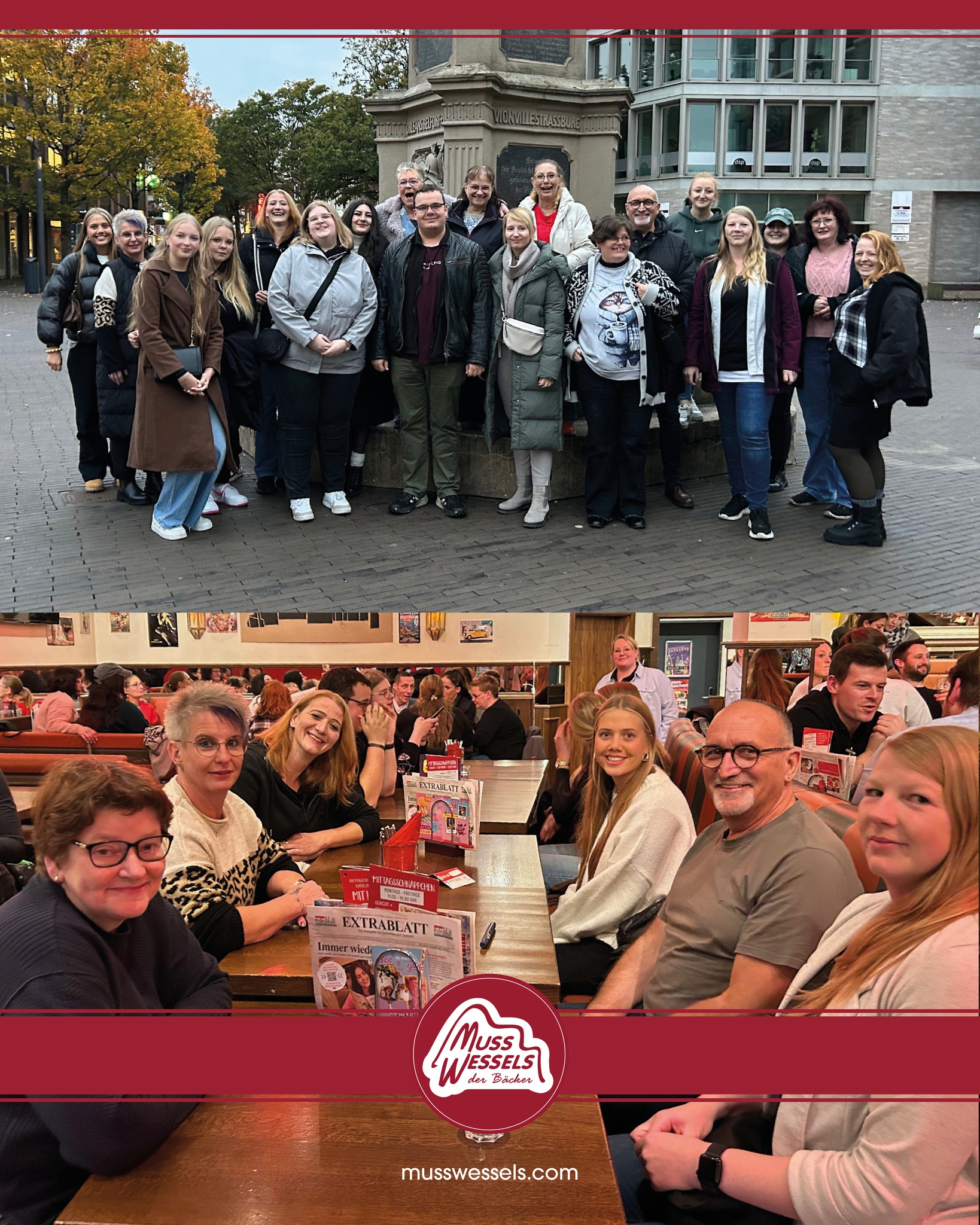 Am Donnerstag, den 9. Oktober, haben sich 25 Kolleginnen und Kollegen aus Verkauf und Verwaltung zu einem ganz besonderen Musswessels-Teamabend getroffen. Im Café Extrablatt in Leer starteten wir mit leckerem Essen und tollen Gesprächen – vielen Dank an das herzliche Team vor Ort! 😊