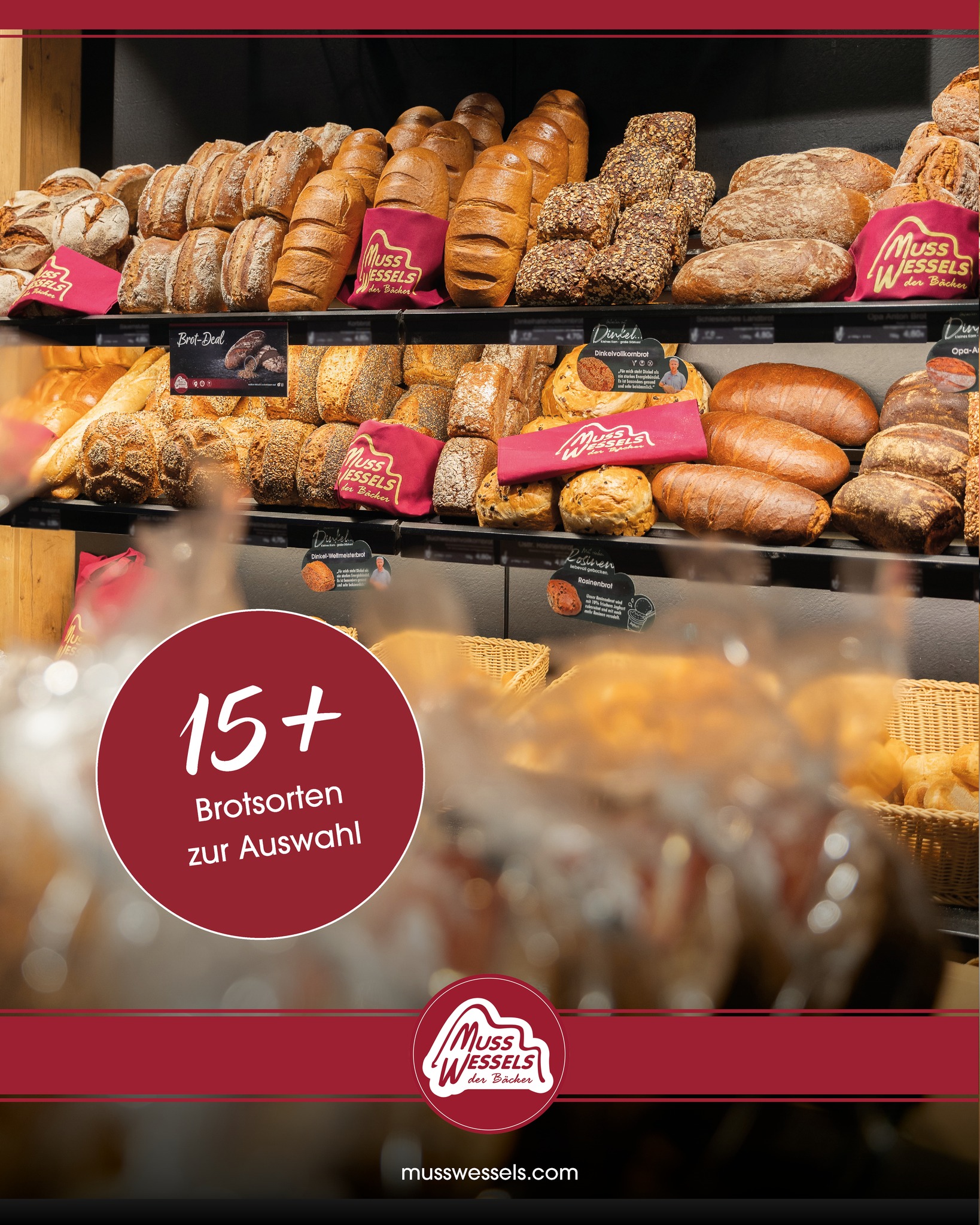 Freut euch auf eine große Brotauswahl mit mehr als 15 verschiedenen Brotsorten – gebacken mit echter Leidenschaft, regional und in bester Qualität.