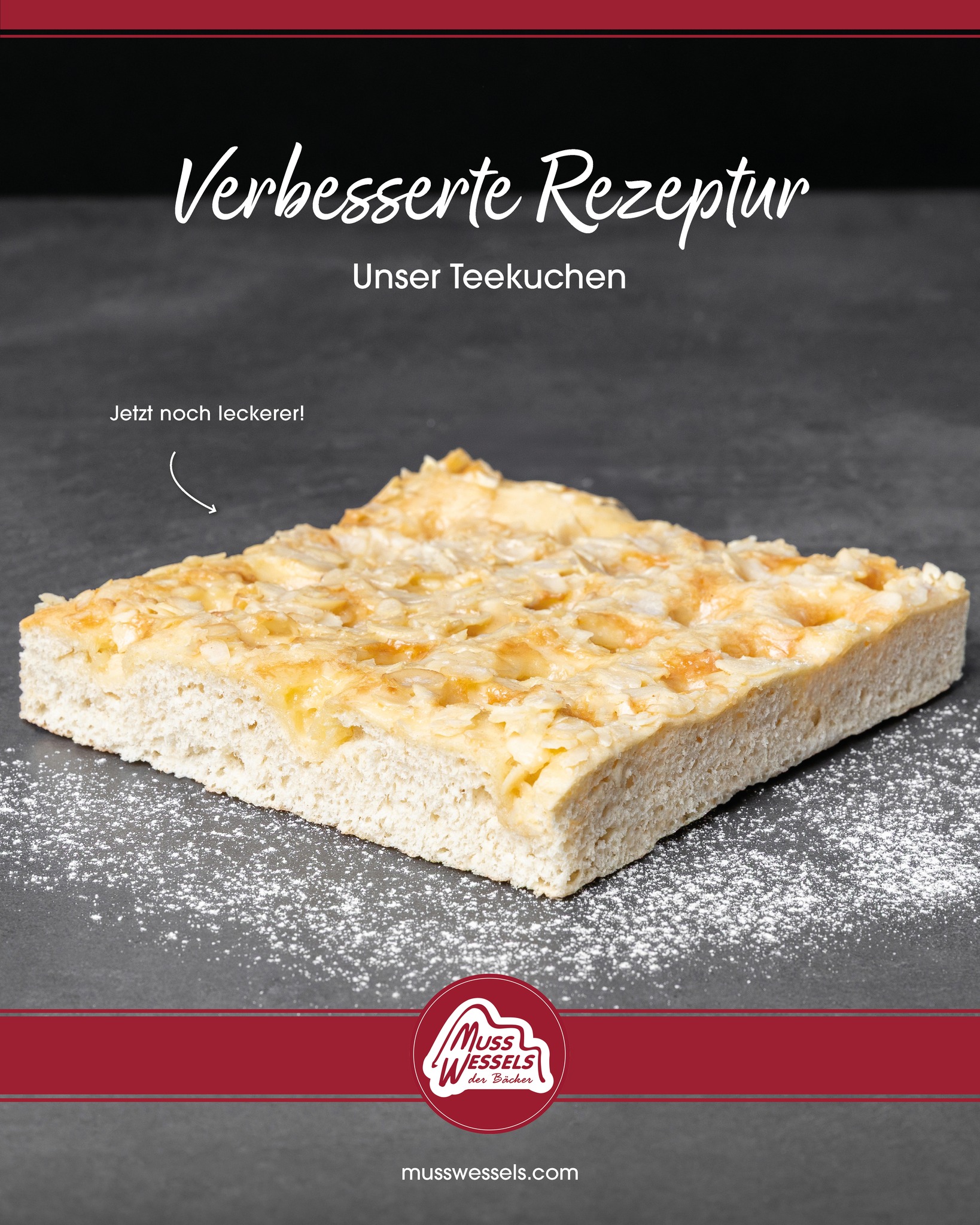 Gute Nachrichten aus eurer Lieblingsbäckerei: Unser beliebter Teekuchen hat ein kleines Update bekommen mit verbesserter Rezeptur und jetzt noch saftiger, noch feiner, noch leckerer!